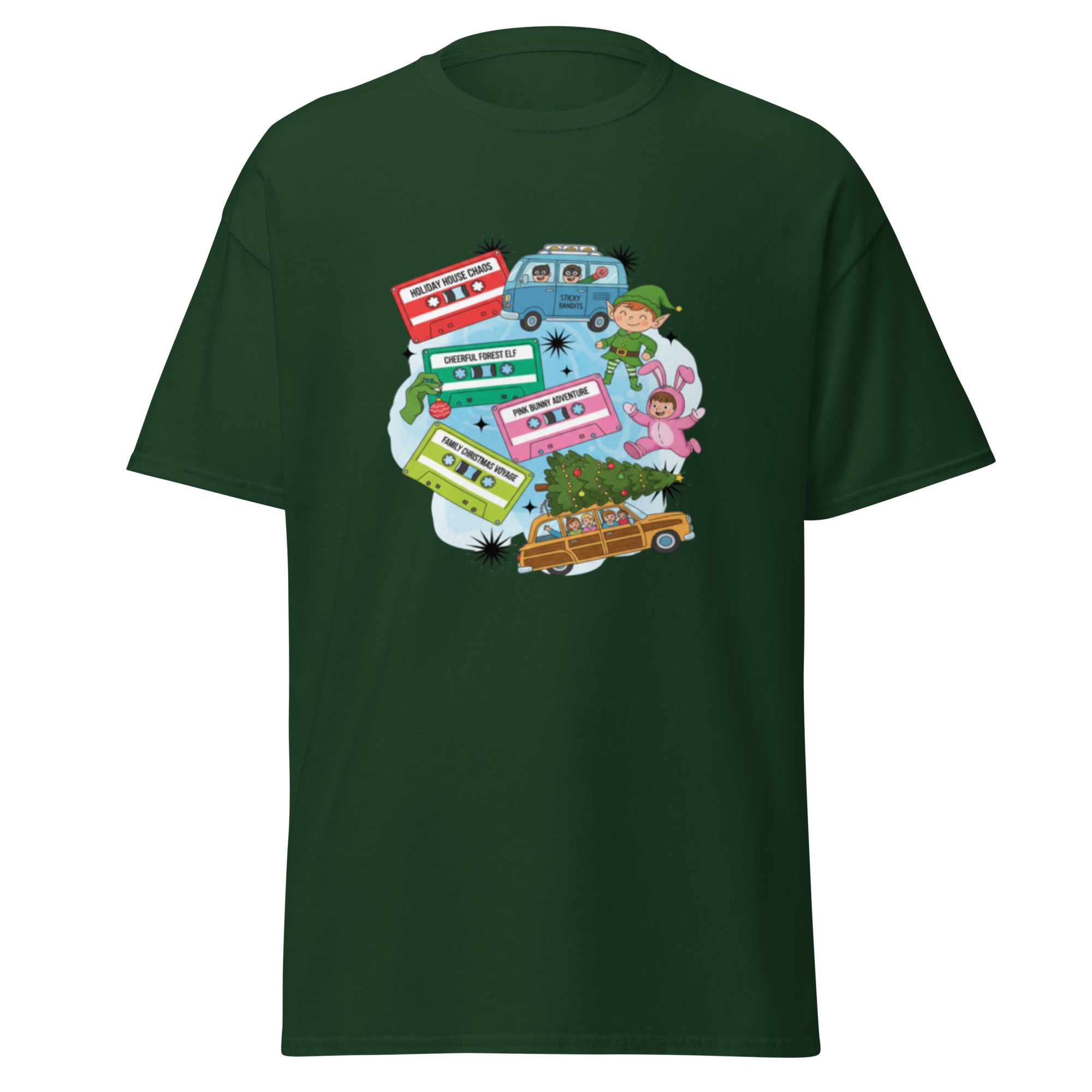 The Holiday Road Trip tee celebrates festive journeys, colorful vans, and the joy of traveling during the holidays.